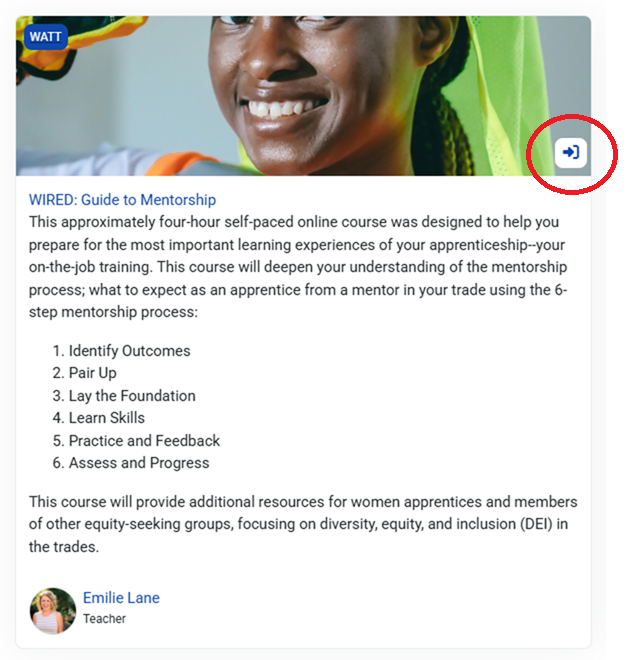 • 4)Find the course called ‘WIRED: Guide to Mentorship’ and click on the arrow in the bottom right corner to self-enroll